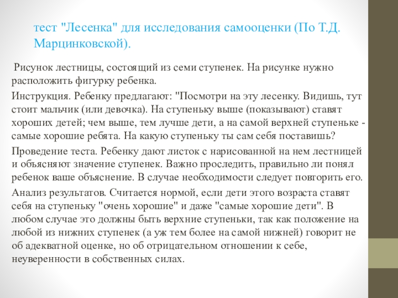 Слайд 6тест "Лесенка" для исследования самооценки (По Т.Д. Марцинковской).