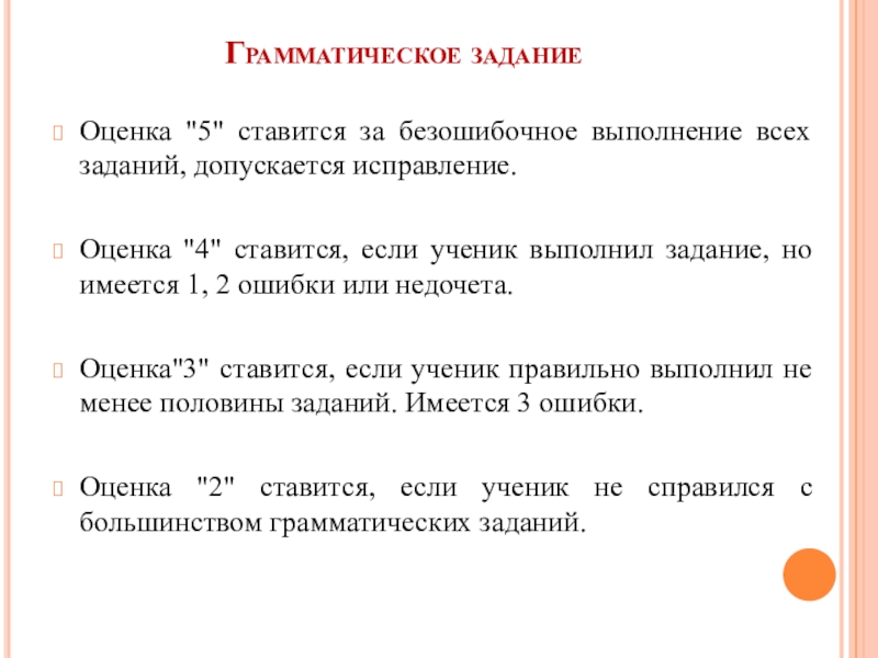 Оценка "2" ставится, если ученик не справился с большинством грамматических заданий.