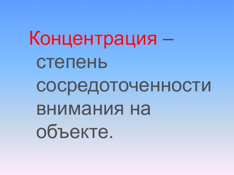 Слайд 5Концентрация – степень сосредоточенности внимания на объекте.
