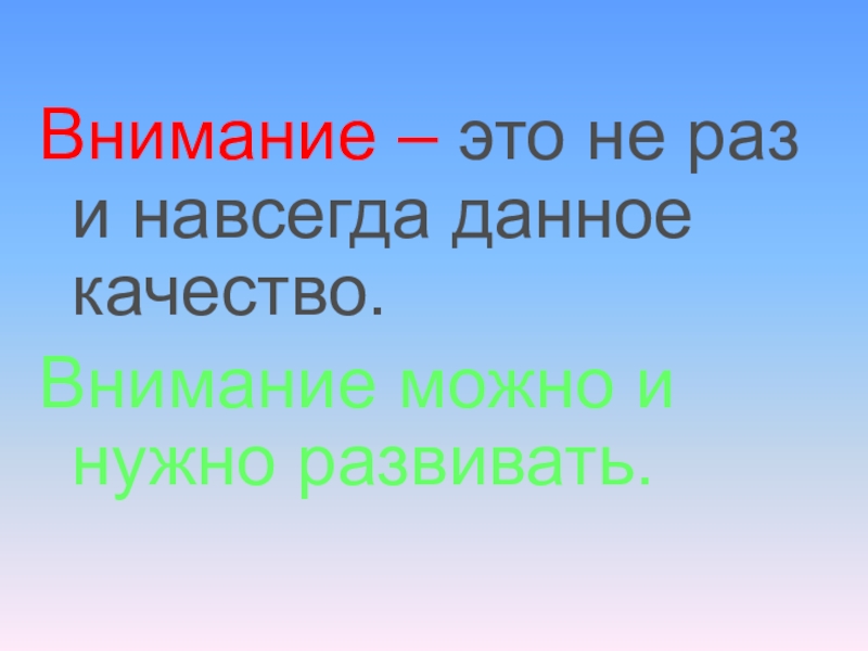 Внимание – это не раз и навсегда данное качество.Внимание можно и нужно развивать.
