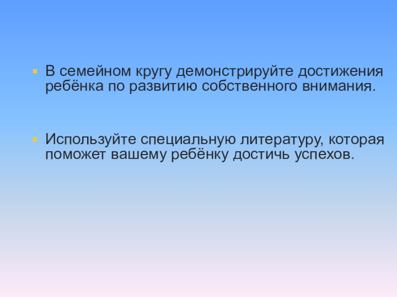 Слайд 13В семейном кругу демонстрируйте достижения ребёнка по развитию собственного внимания.