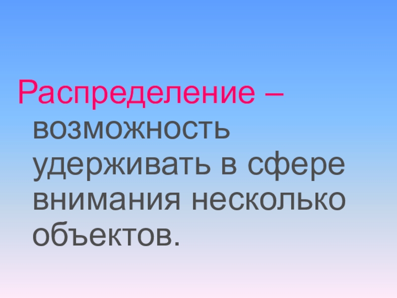 Распределение – возможность удерживать в сфере внимания несколько объектов.