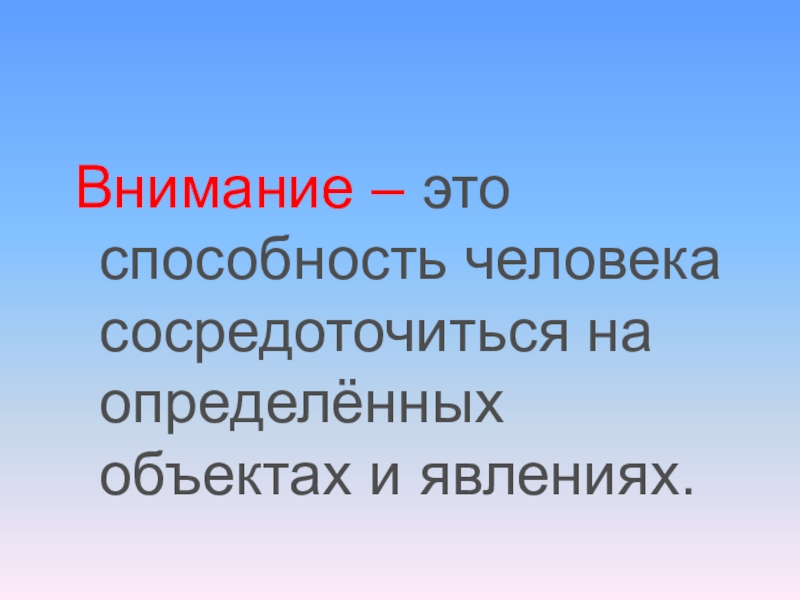 Внимание – это способность человека сосредоточиться на определённых объектах и явлениях.