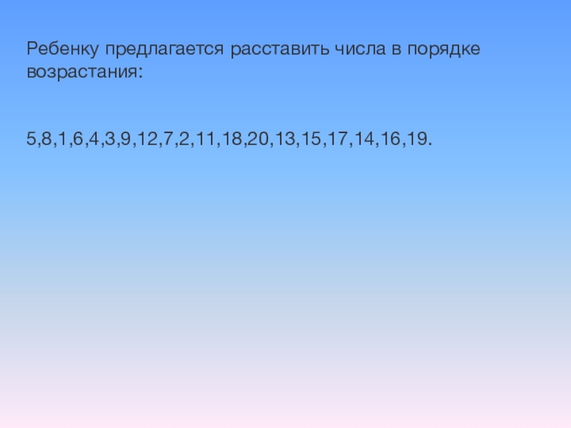 Слайд 24Ребенку предлагается расставить числа в порядке возрастания: