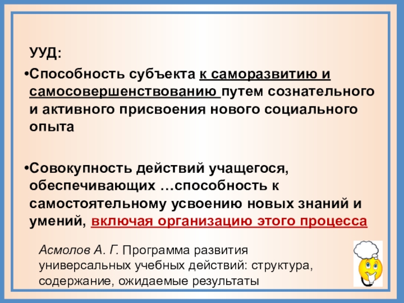 Асмолов А. Г. Программа развития универсальных учебных действий: структура, содержание, ожидаемые результаты