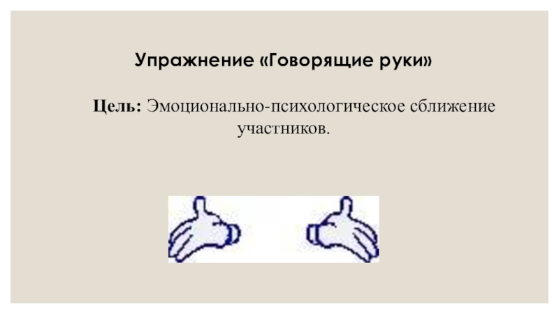 Упражнение «Говорящие руки»Цель: Эмоционально-психологическое сближение участников.