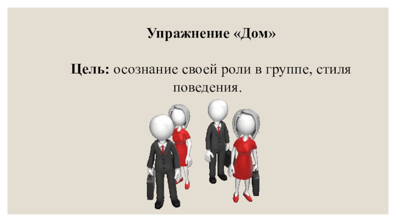 Упражнение «Дом»Цель: осознание своей роли в группе, стиля поведения.