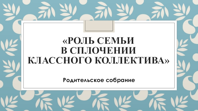 Слайд 3«РОЛЬ СЕМЬИ В СПЛОЧЕНИИ КЛАССНОГО КОЛЛЕКТИВА»