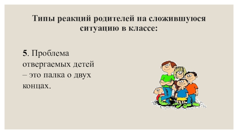 Типы реакций родителей на сложившуюся ситуацию в классе: 5. Проблема отвергаемых детей – это палка о двух