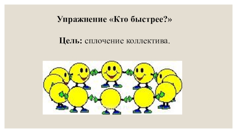Упражнение «Кто быстрее?»Цель: сплочение коллектива.