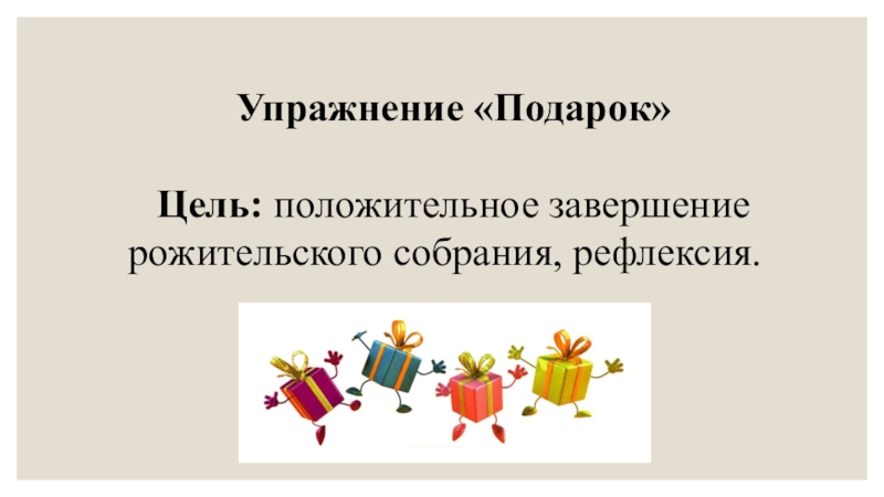 Упражнение «Подарок»Цель: положительное завершение рожительского собрания, рефлексия.