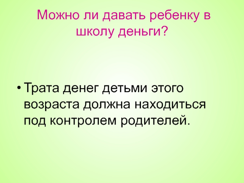 Слайд 24 Можно ли давать ребенку в школу деньги?