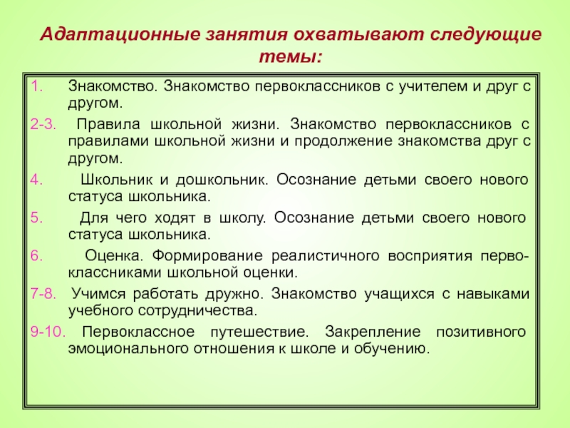 Слайд 11Адаптационные занятия охватывают следующие темы: