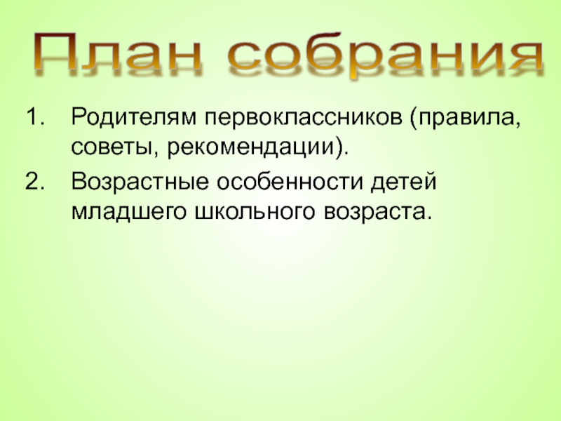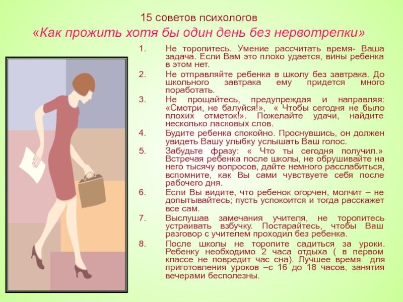 Слайд 4Родителям первоклассников (правила, советы, рекомендации).