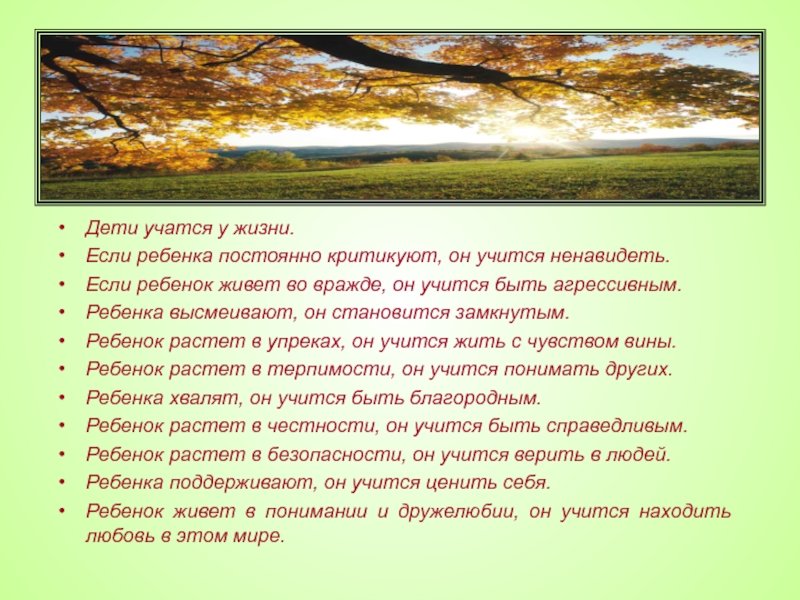 Ребенок живет в понимании и дружелюбии, он учится находить любовь в этом мире.