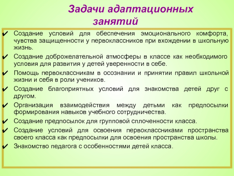 обеспечения эмоционального комфорта, чувства защищенности у первоклассников при вхождении в школьную жизнь.