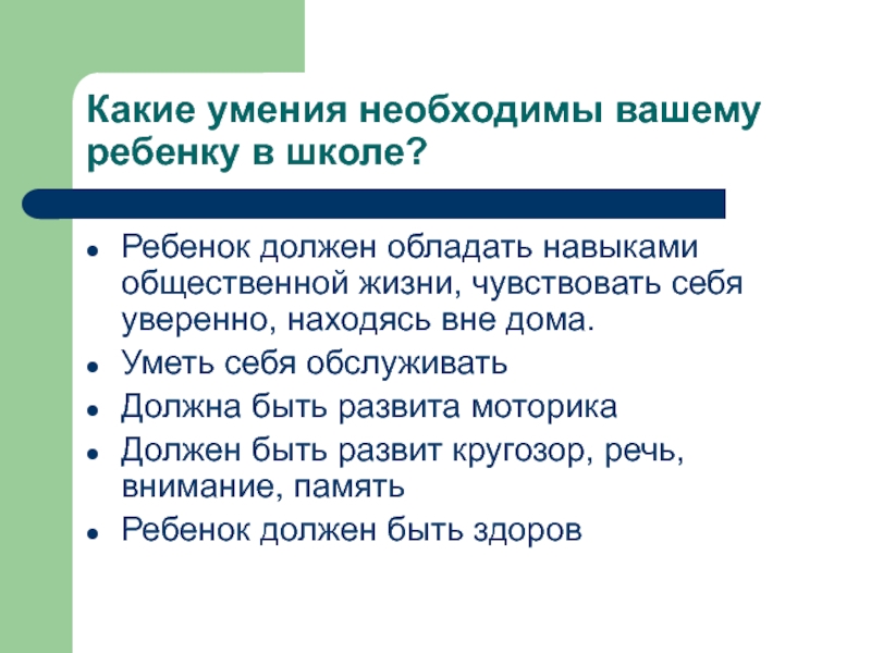 Слайд 8Какие умения необходимы вашему ребенку в школе?