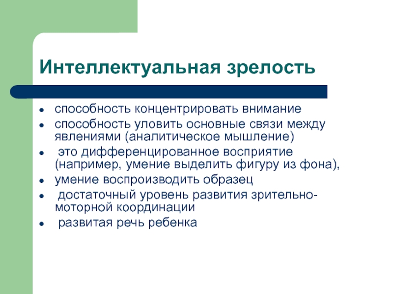 это дифференцированное восприятие (например, умение выделить фигуру из фона),