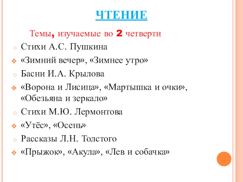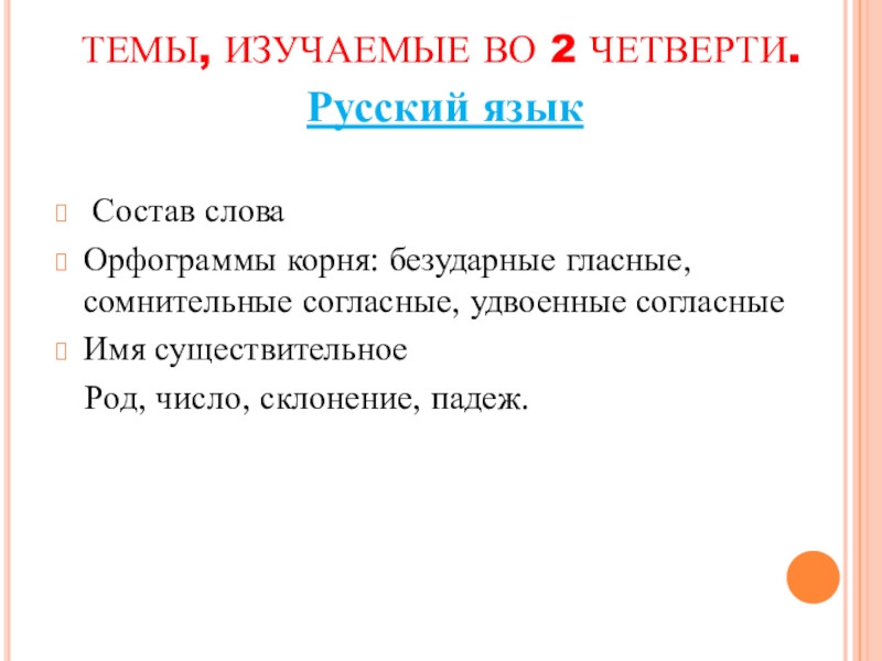 Слайд 6ТЕМЫ, ИЗУЧАЕМЫЕ ВО 2 ЧЕТВЕРТИ.