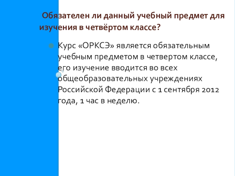Слайд 15 Обязателен ли данный учебный предмет для изучения в четвёртом классе?
