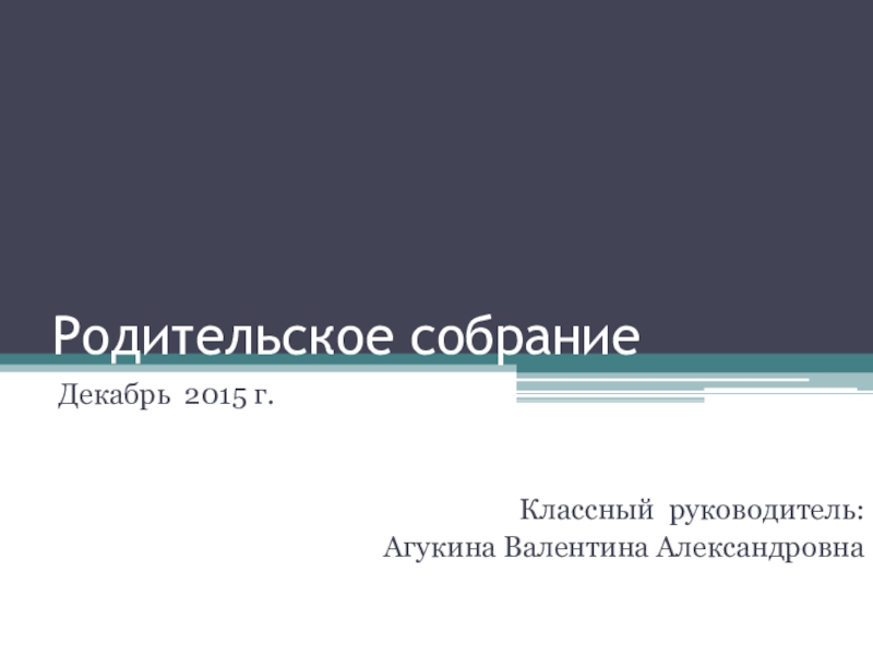 Родительское собраниеДекабрь 2015 г.Классный руководитель: Агукина Валентина Александровна