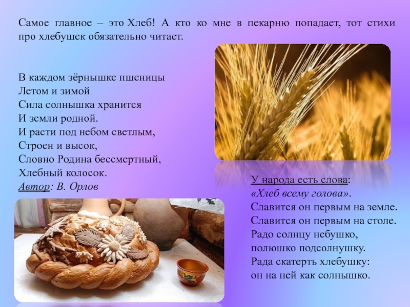 о том, чем для нас является хлеб. Хочется верить, что вы будете учить своих детей ценить и беречь хлеб, относиться к нему с уважением, быть благодарными тем, кто растит хлеб.