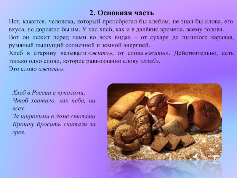 Вот он лежит перед нами во всех видах – от сухаря до пышного каравая, румяный пышущий солнечной и земной энергией.