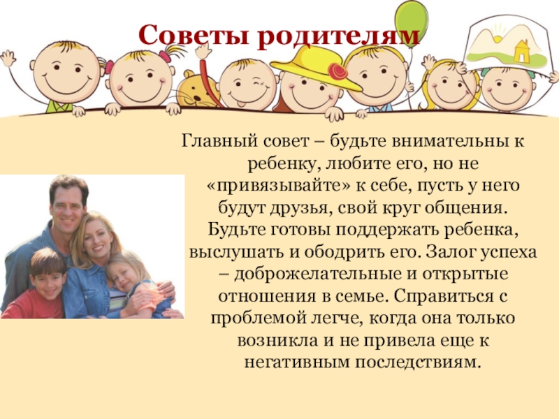 Главный совет – будьте внимательны к ребенку, любите его, но