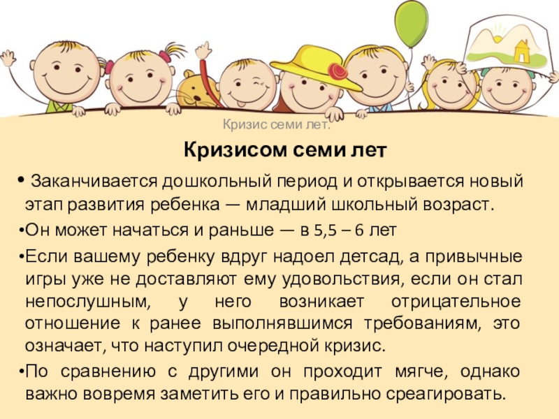 Если вашему ребенку вдруг надоел детсад, а привычные игры уже не доставляют ему удовольствия, если он стал непослушным, у него возникает отрицательное отношение к ранее выполнявшимся требованиям, это означает, что наступил очередной кризис.
