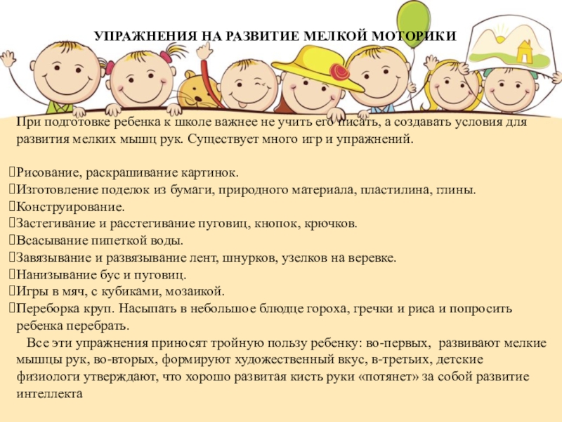 УПРАЖНЕНИЯ НА РАЗВИТИЕ МЕЛКОЙ МОТОРИКИ