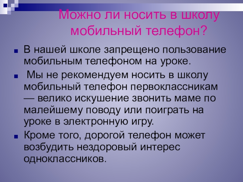 Слайд 21Можно ли носить в школу мобильный телефон?