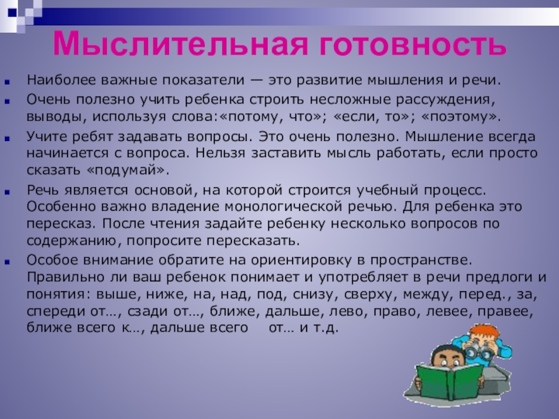 полезно учить ребенка строить несложные рассуждения, выводы, используя слова:«потому, что»; «если, то»; «поэтому».
