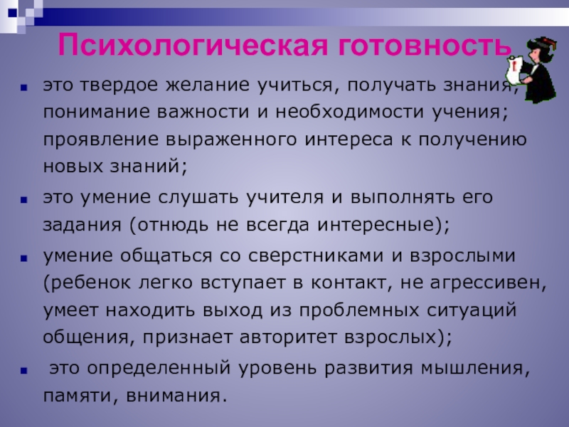 это твердое желание учиться, получать знания; понимание важности и необходимости