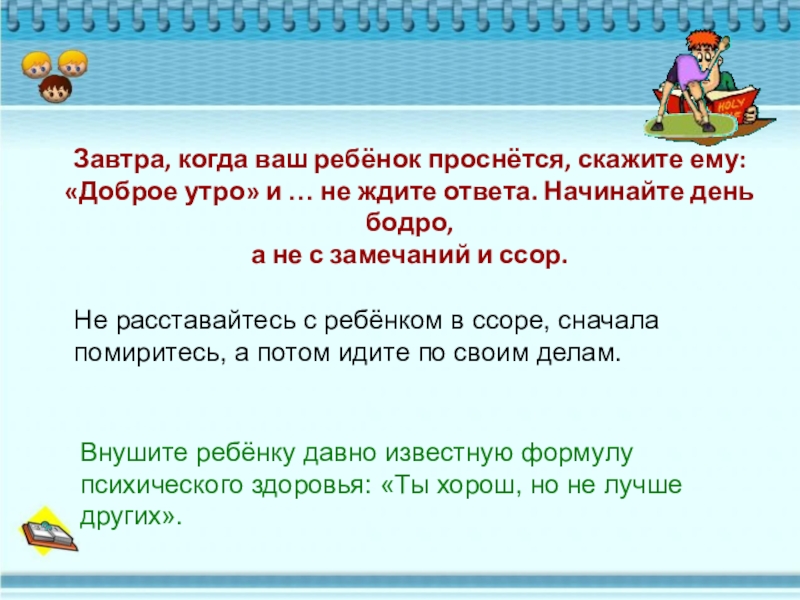 Внушите ребёнку давно известную формулу психического здоровья: «Ты хорош, но не лучше других».