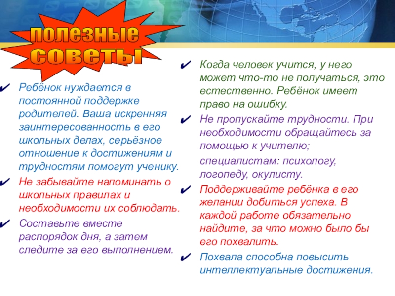 Поддерживайте ребёнка в его желании добиться успеха. В каждой работе обязательно найдите, за что можно было бы его похвалить.