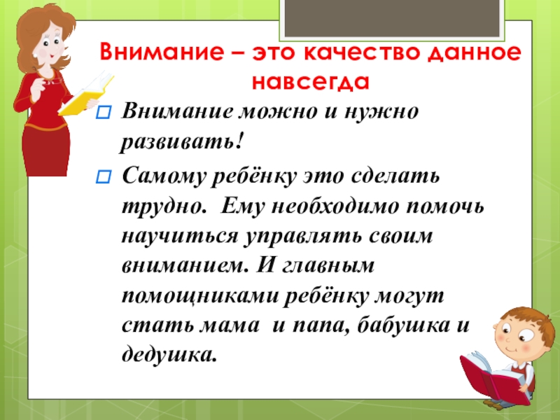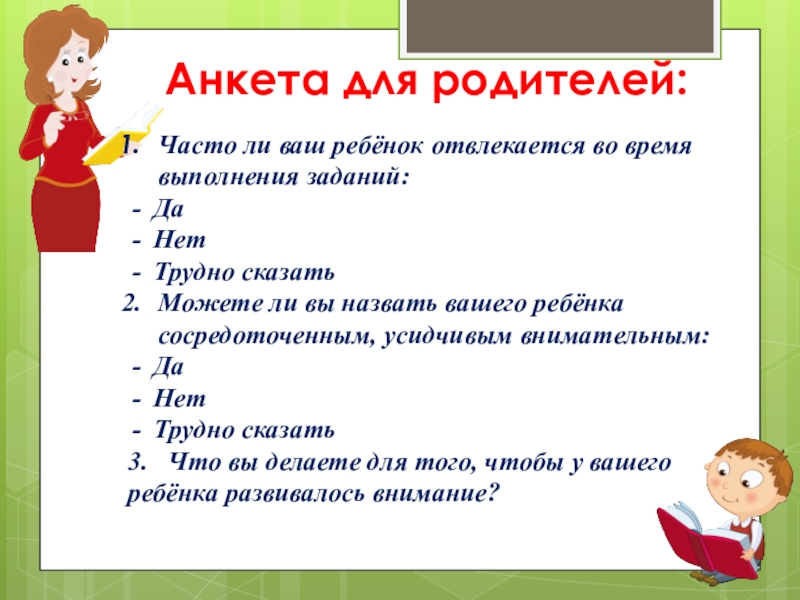 2. Легко переключаемое внимание в процессе работы, но так же и легко отвлекаемое на посторонние моменты.