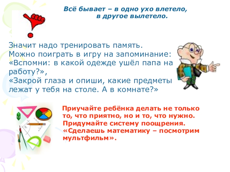 В чём проблема? «Не в памяти, а в низкой самооценке», - считают детские психологи. Ребёнок зажат, боится ошибиться, боится насмешек. Что делать?