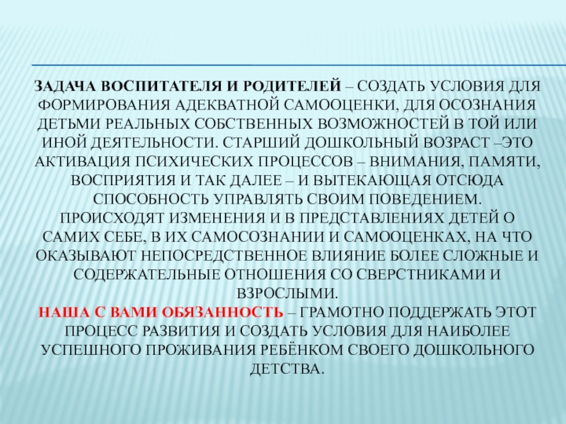 Сам дошкольник постепенно подходит к осознанию себя как субъекта взаимоотношений.