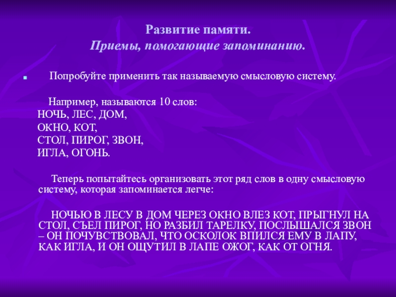 Такой прием позволяет значительно повысить продуктивность запоминания.