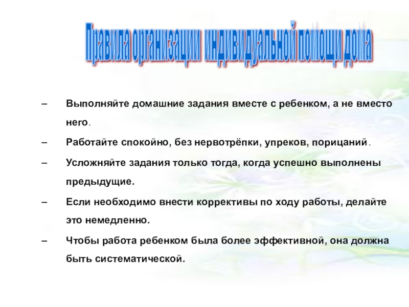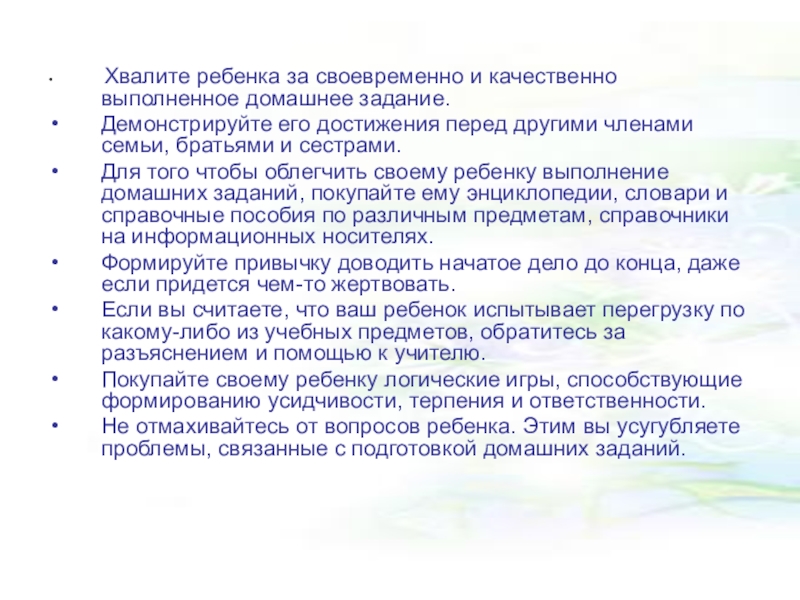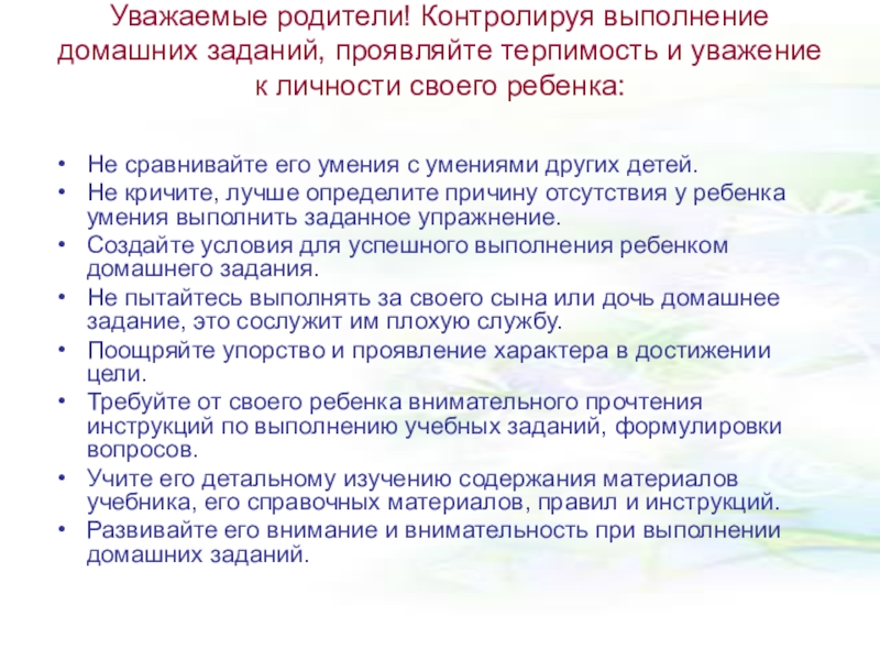 Развивайте его внимание и внимательность при выполнении домашних заданий.