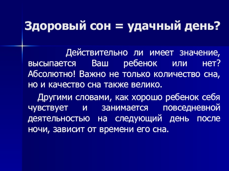 значение, высыпается Ваш ребенок или нет? Абсолютно! Важно не только количество сна, но и качество сна также велико.