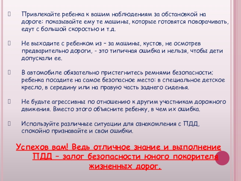 Слайд 18Привлекайте ребенка к вашим наблюдениям за обстановкой на дороге: показывайте ему