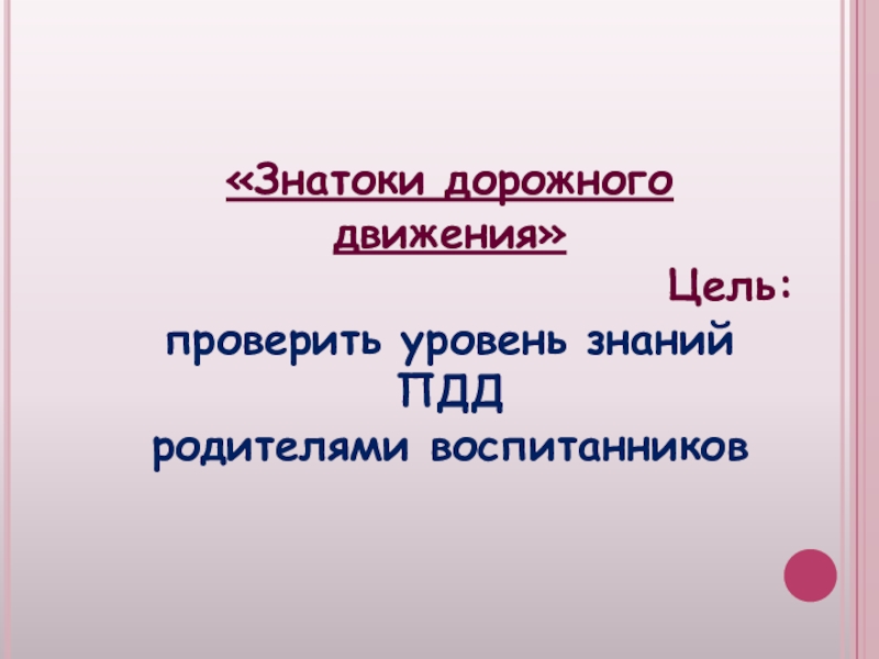 «Знатоки дорожного движения» Цель: проверить уровень знаний ПДД родителями воспитанников