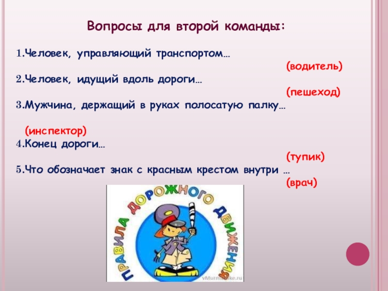 Вопросы для второй команды:Человек, управляющий транспортом…