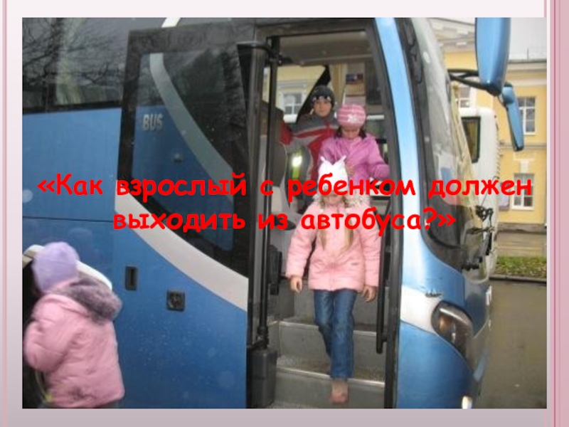 Слайд 13«Как взрослый с ребенком должен выходить из автобуса?»