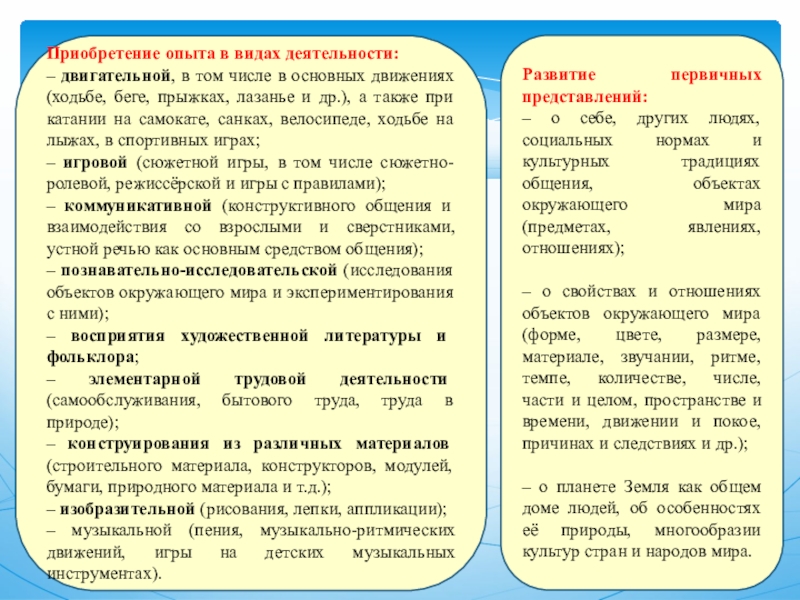 – о себе, других людях, социальных нормах и культурных традициях общения, объектах окружающего мира (предметах, явлениях, отношениях);