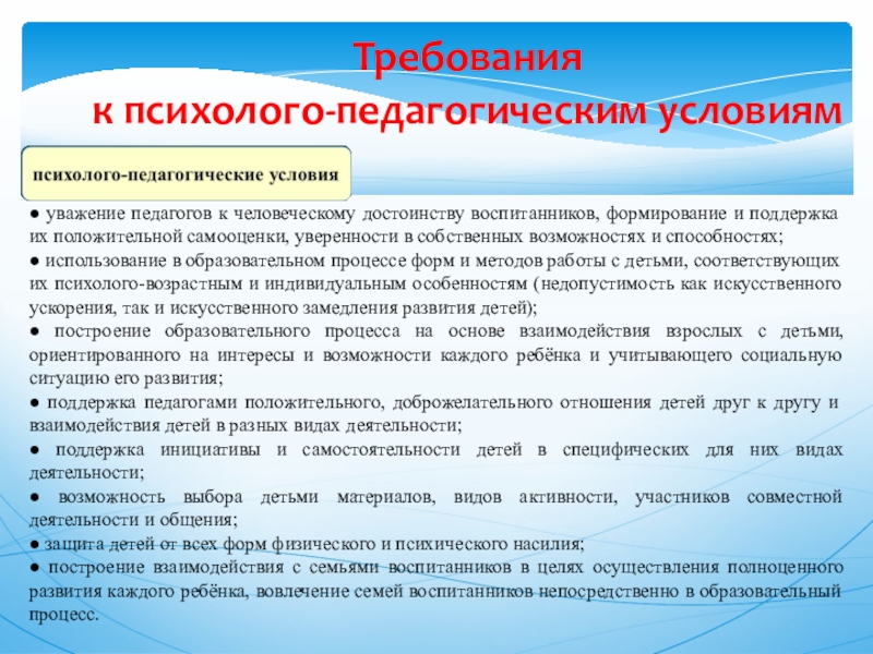 3) в создании условий, необходимых для реализации образовательной программы, принимают участие помощники воспитателя и другие работники.