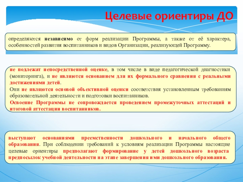 не подлежат непосредственной оценке, в том числе в виде педагогической диагностики (мониторинга), и не являются основанием для их формального сравнения с реальными достижениями детей.