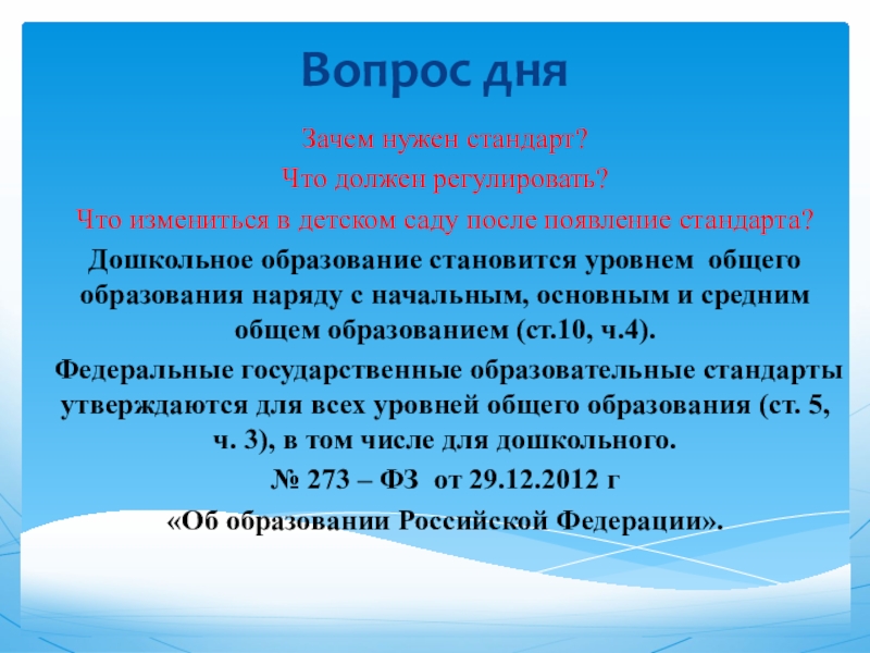 Стандарт в образовании должен выступать гарантией конституционного права российского гражданина, права любого человека на качественное образование.