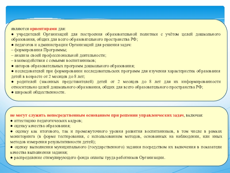 Они не являются основой объективной оценки соответствия установленным требованиям образовательной деятельности и подготовки воспитанников.